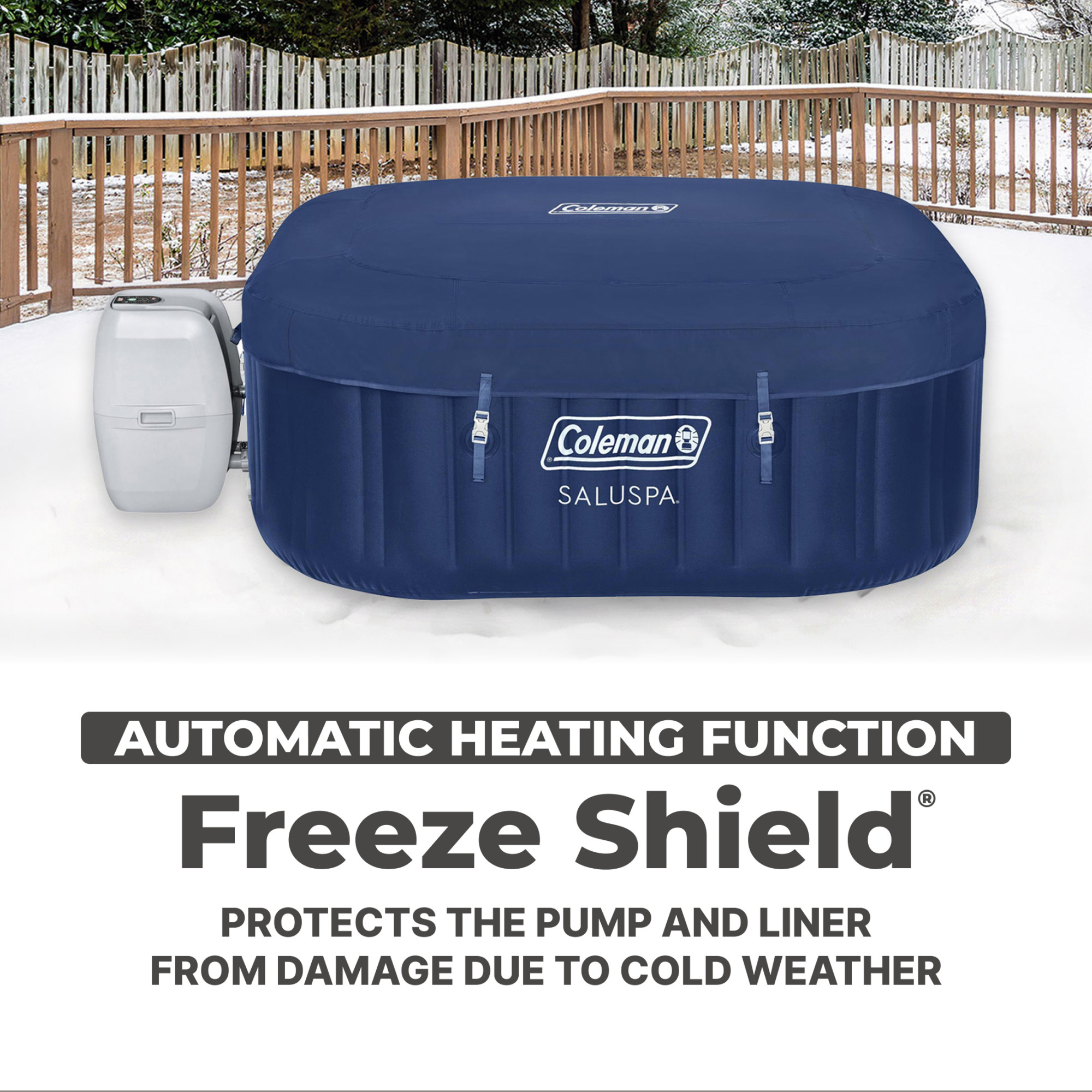 - Equipped with a pump that quickly inflates the spa, heats it up, runs filtration, and controls the massage system
